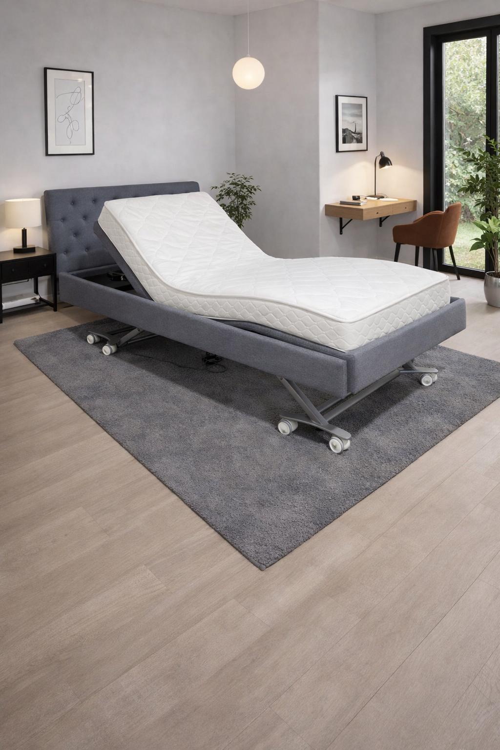 Ervaar ultiem comfort en maximale flexibiliteit met onze elektrisch hoog-laag bed, geschikt voor zowel dagelijks thuisgebruik als zorgsituaties. Met de krachtige motor pas je eenvoudig de hoogte én de lig- en zitpositie aan, zodat opstaan, zitten of liggen altijd veilig, comfortabel en ergonomisch verloopt.