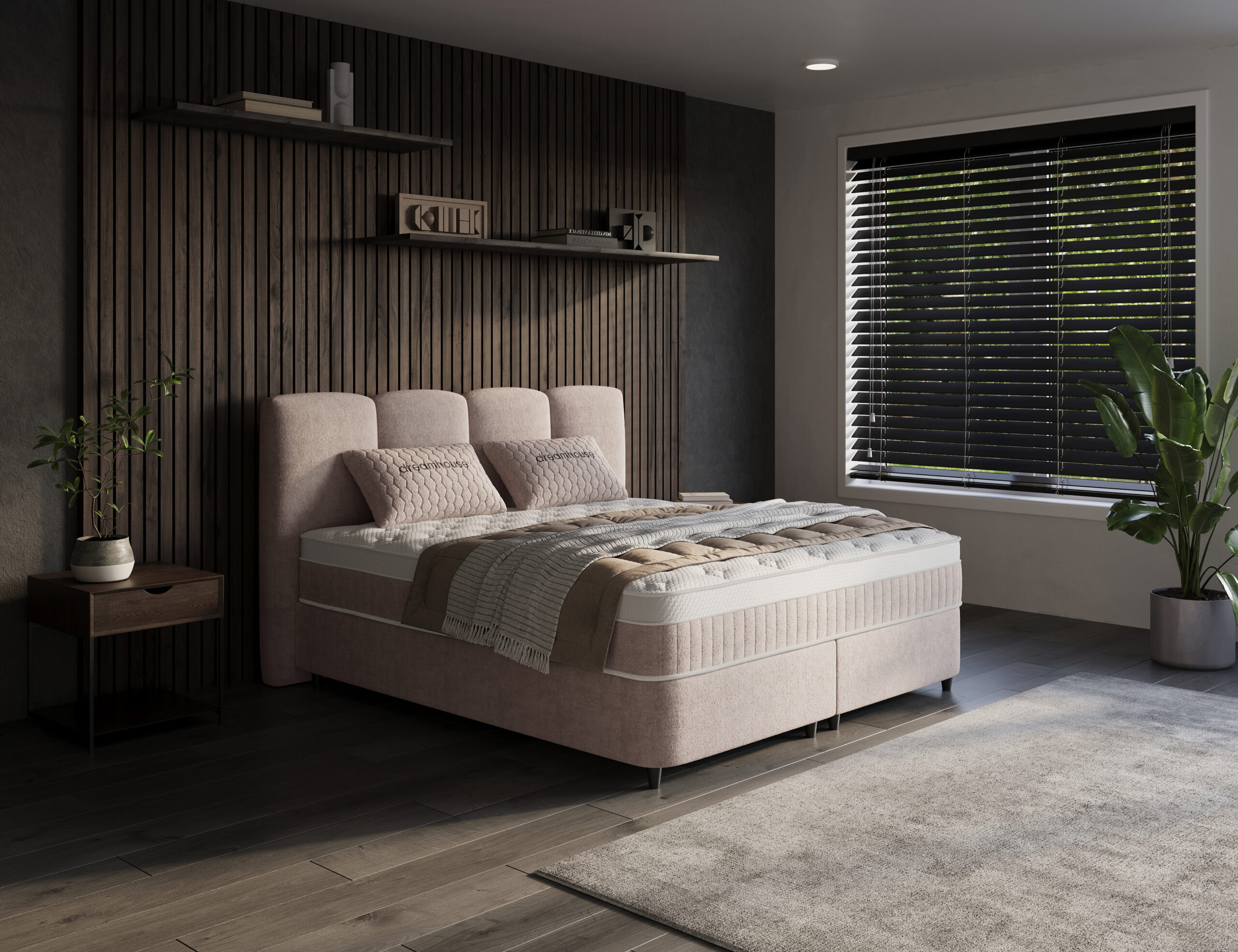 Ontdek de Slaap-Optimaal Allure boxspring in stijlvolle taupe kleur.
