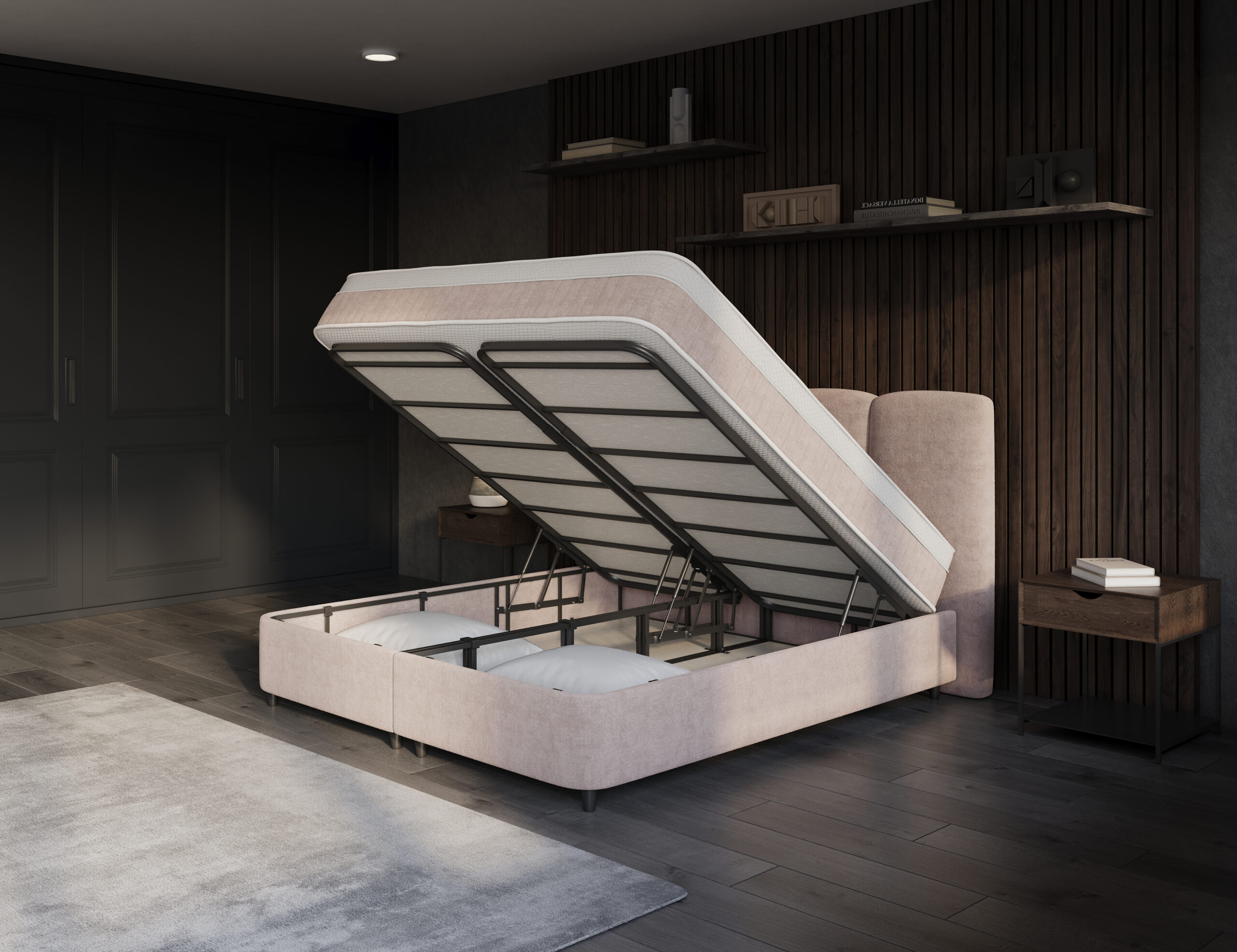 💡 Tip: Dankzij de ruime opbergbak en sterke gasveren is de boxspring eenvoudig te openen,