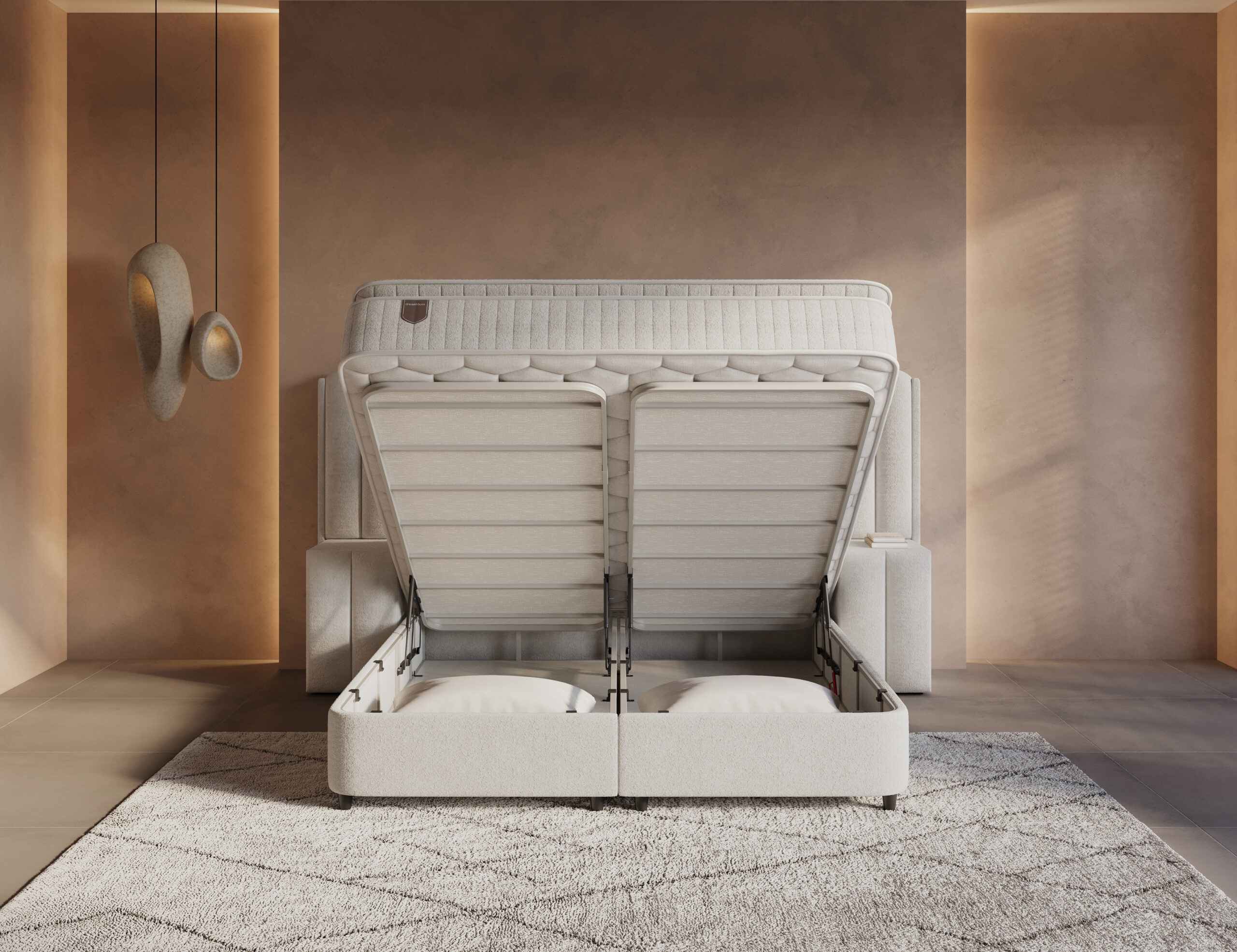 Ontdek deze Slaap-Optimaal opbergboxspring in stijlvolle beige kleur.